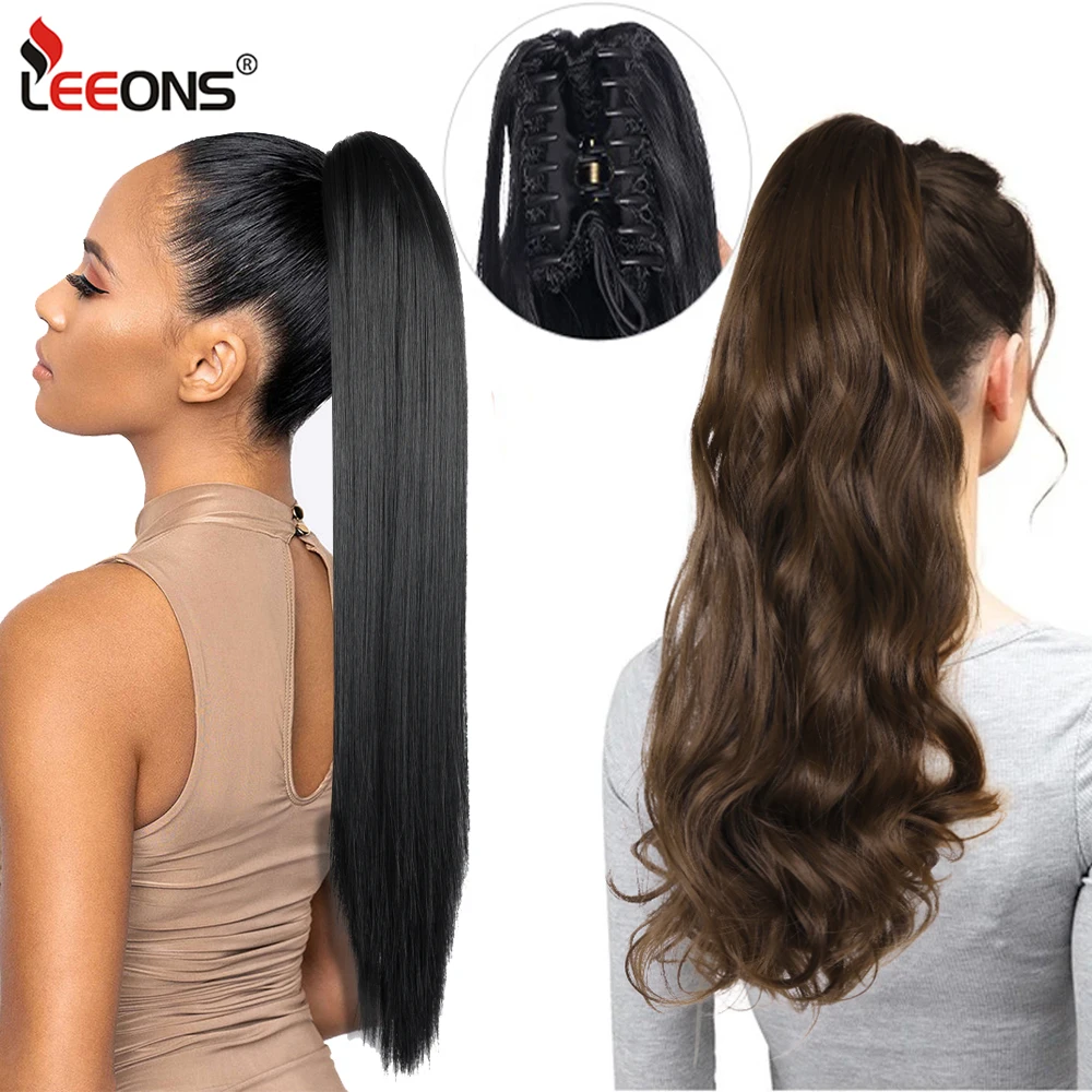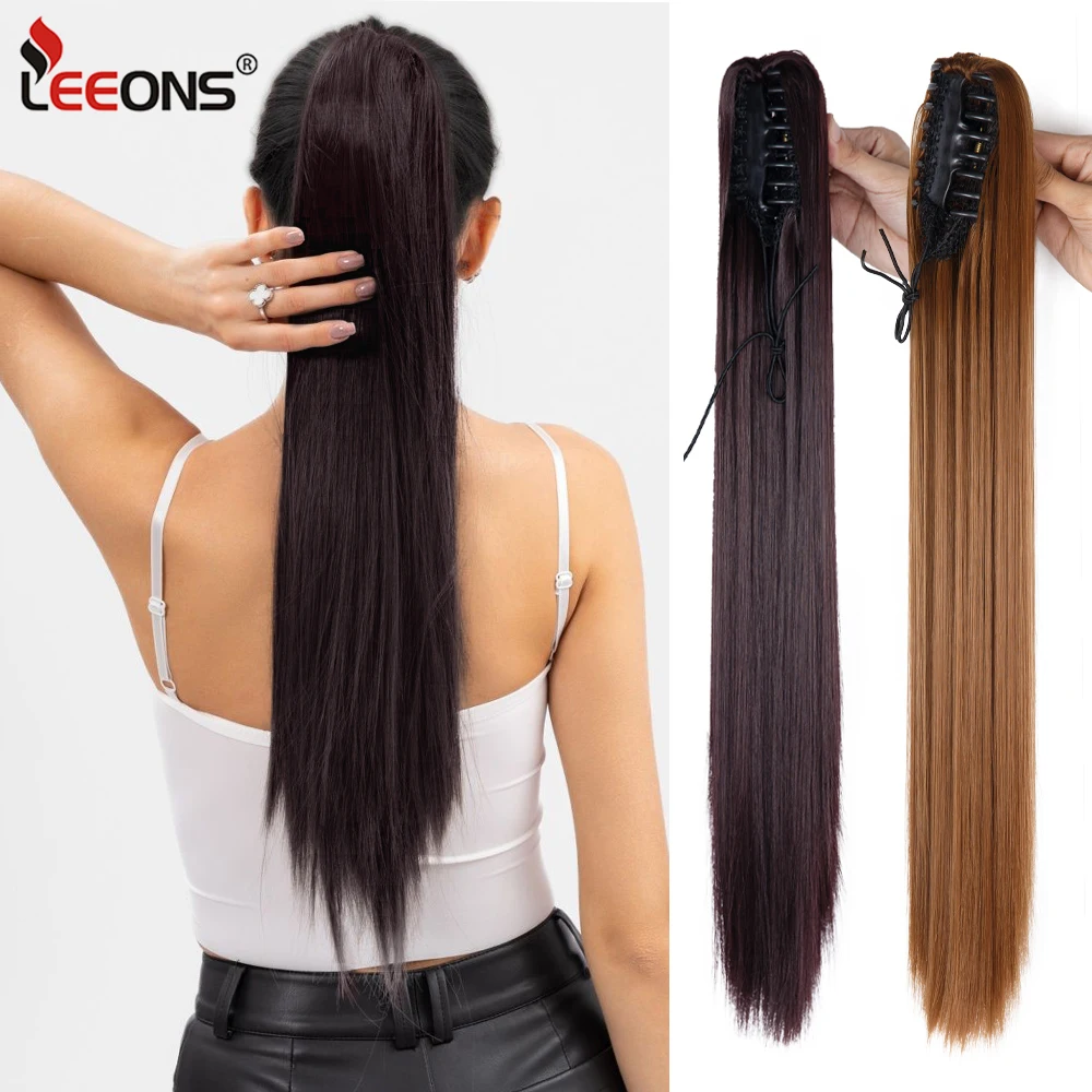 24Inch Synthetic Long Straight Claw Clip On Ponytail Hair Extensions Heat Resistant Pony Tail Hair piece For Women Daily Party